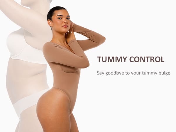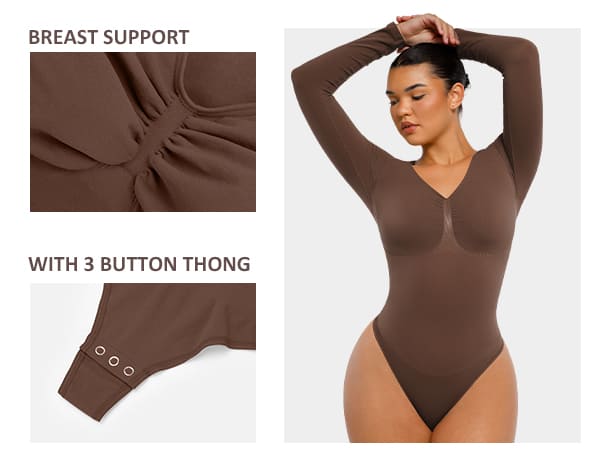 Seamless Long Sleeve Tummy Control Thong Bodysuit