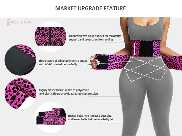 The She's Gear Triple Wrap Tummy Control Waist Trainer Belt shapes your hourglass figure with durable nylon fabric and a unique 3-belt design, perfect for workouts, daily wear, or postpartum recovery.
